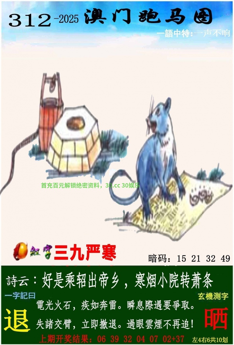 312期:开奖时间2025年11月08(星期六)晚9:30开(农历九月十九 蛇冲猪)